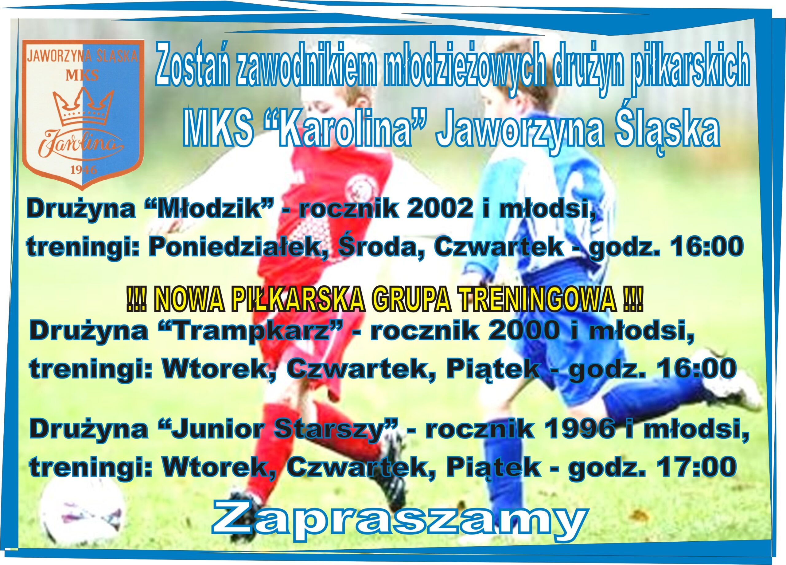 Informujemy również o możliwości zapisania się do innych grup treningowych MKS „Karolina”: