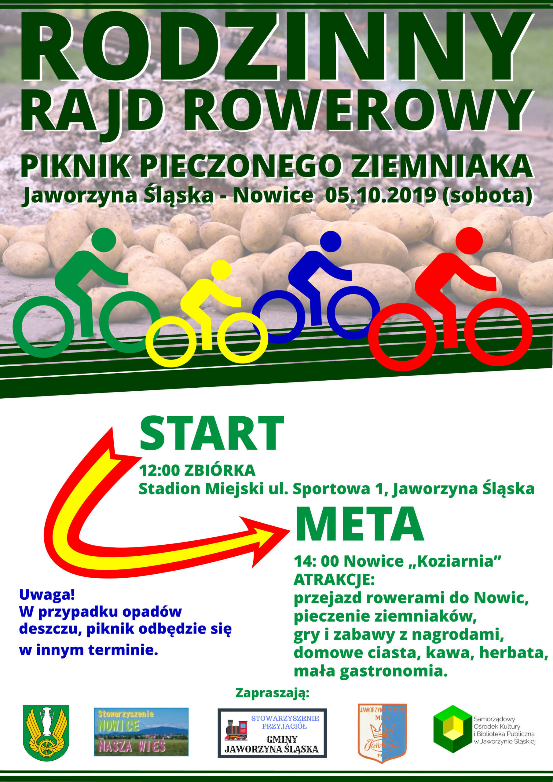 Serdecznie zapraszamy w sobotę 5 października 2019 roku do udziału w Rodzinnym Rajdzie Rowerowym który zakończy się pieczeniem ziemniaków (i nie tylko) w Nowicach na Koziarni.