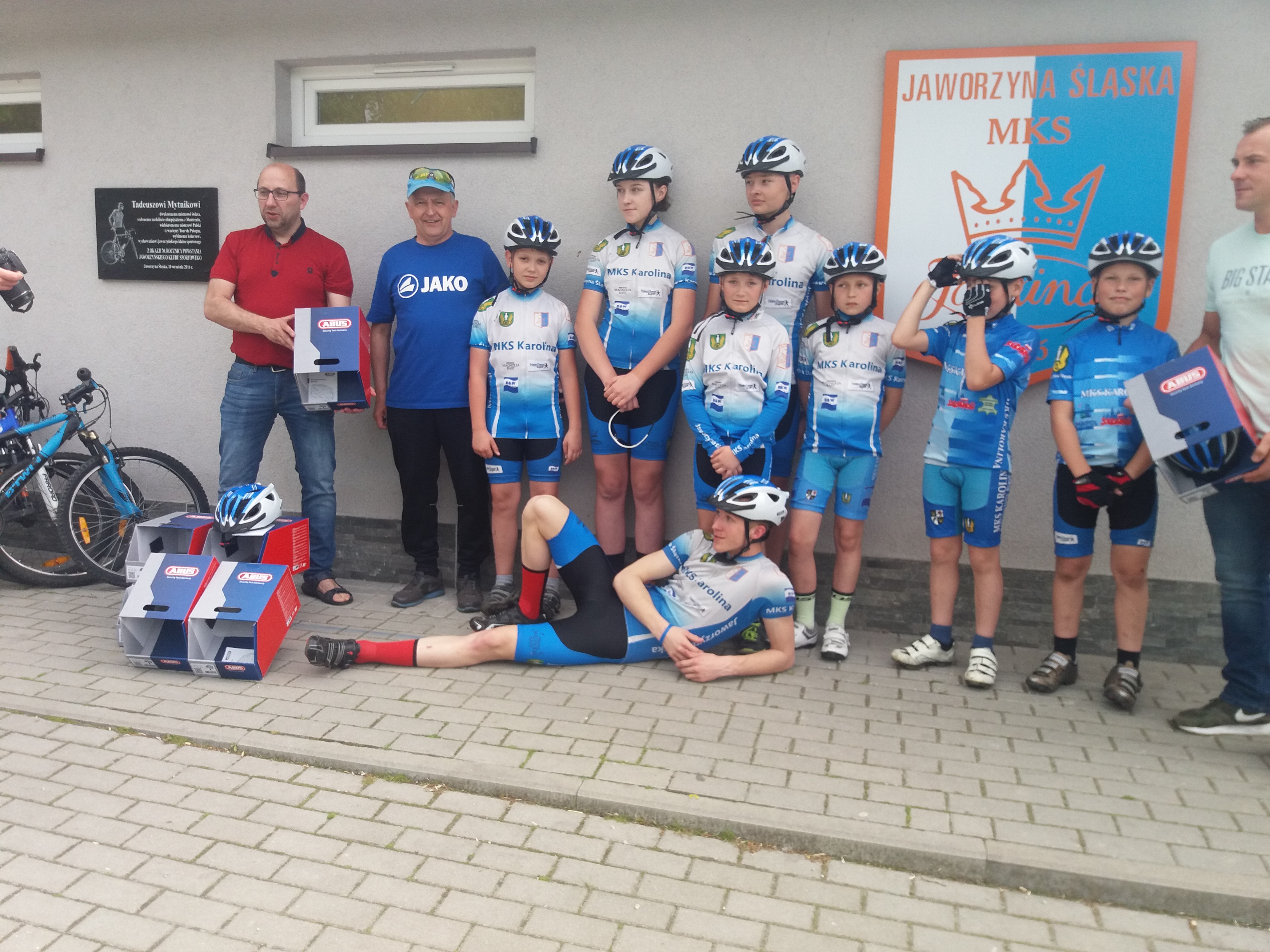 W dniu 22.05.2019 r. na Stadionie MKS „Karolina” odbyło się przekazanie zawodnikom sekcji kolarskiej nowych kasków firmy ABUS. Serdeczne podziękowania dla Firmy ABUS Polska oraz Zarębski Team za wyposażenie naszych zawodników w kaski które poprawią bezpieczeństwo naszych zawodników.